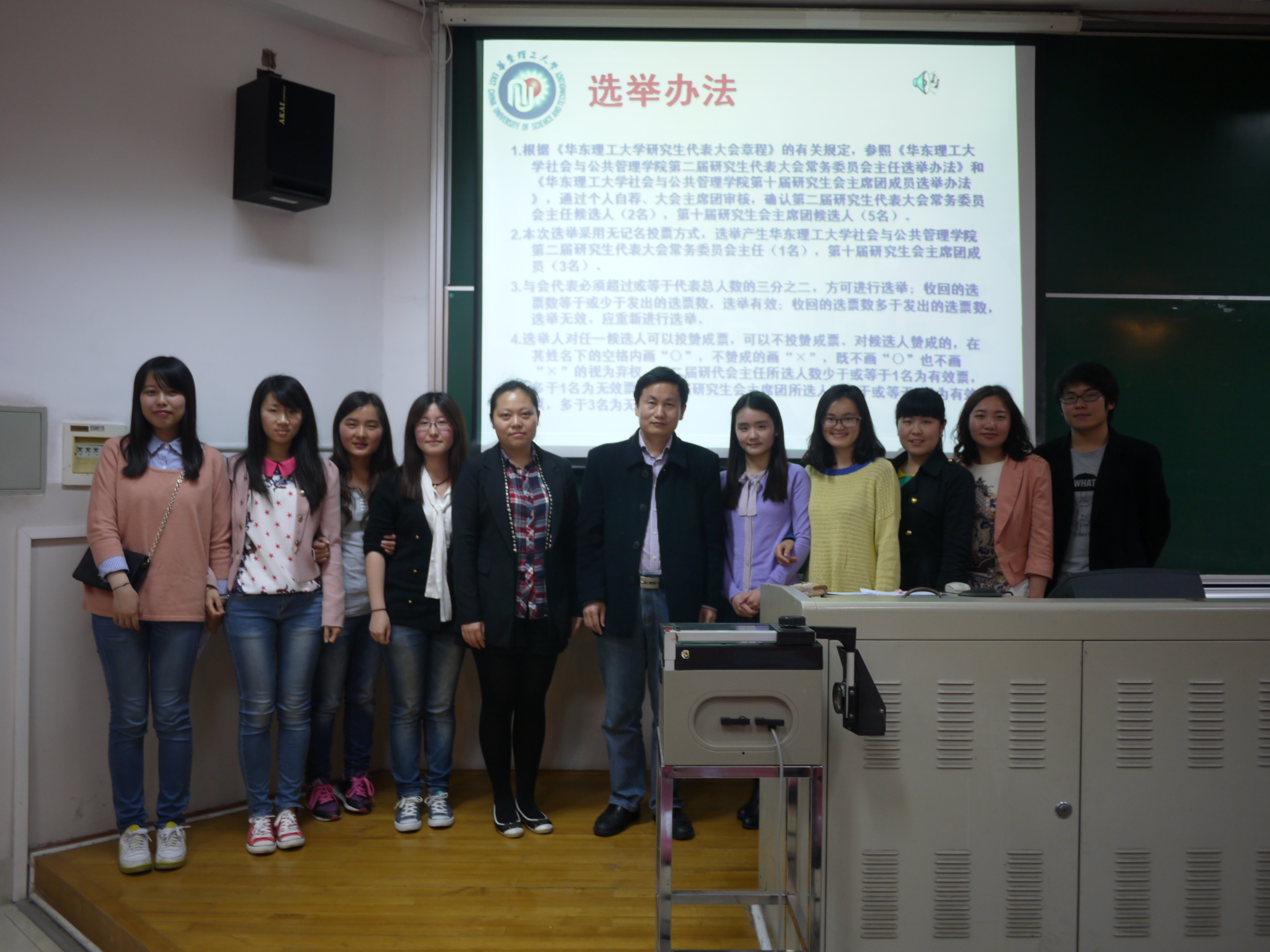 2014年4月25日晚7点,我院研会、研代会换届选举会议在我校第八教学楼206室顺利召开,会议选举产生了第十届研会主席团成员和第二届研代会主任。学院副院长杨发祥教授、研究生管理办公室孙秀慧老师出席了此次会议,换届选举工作圆满完成。