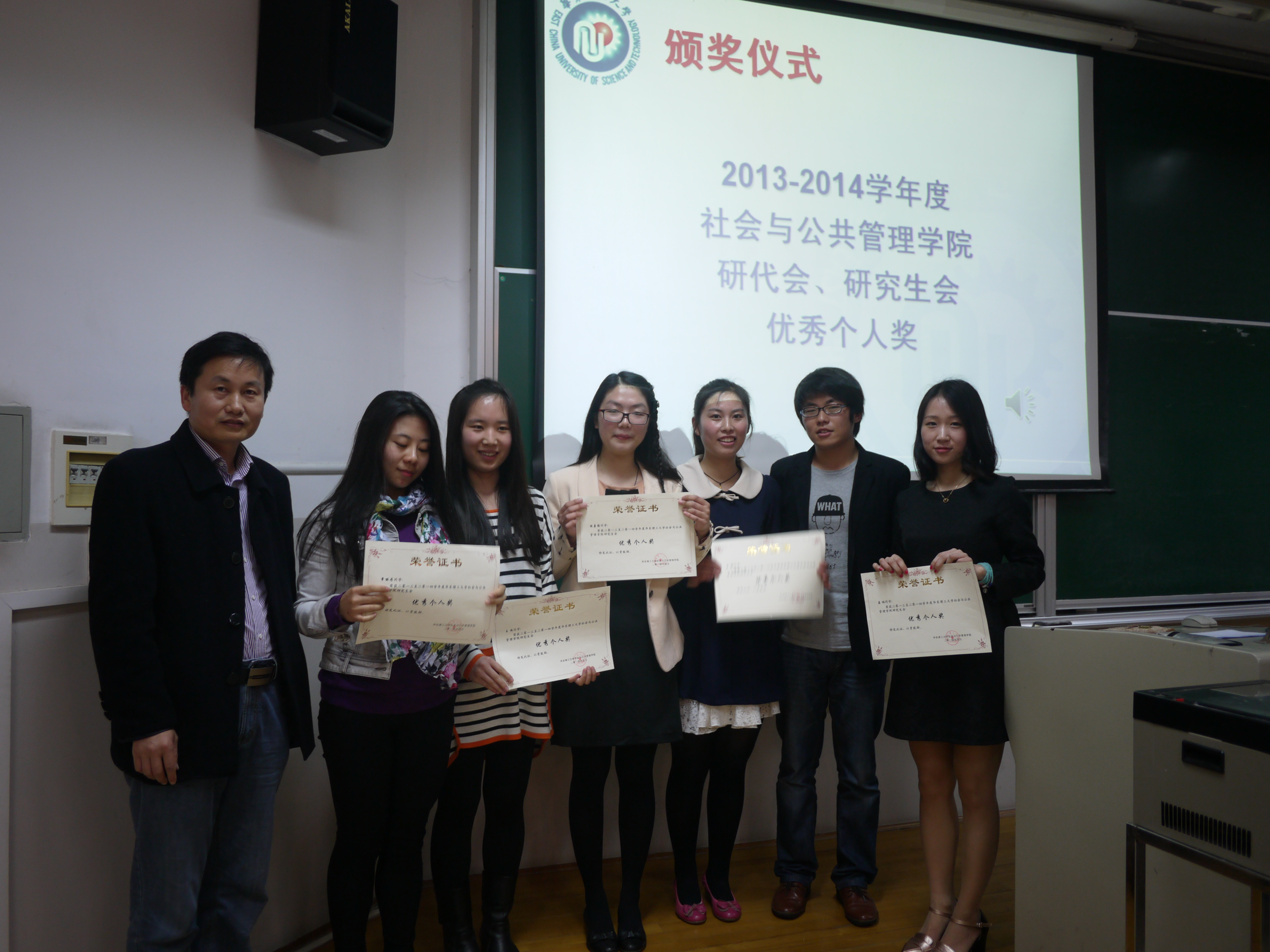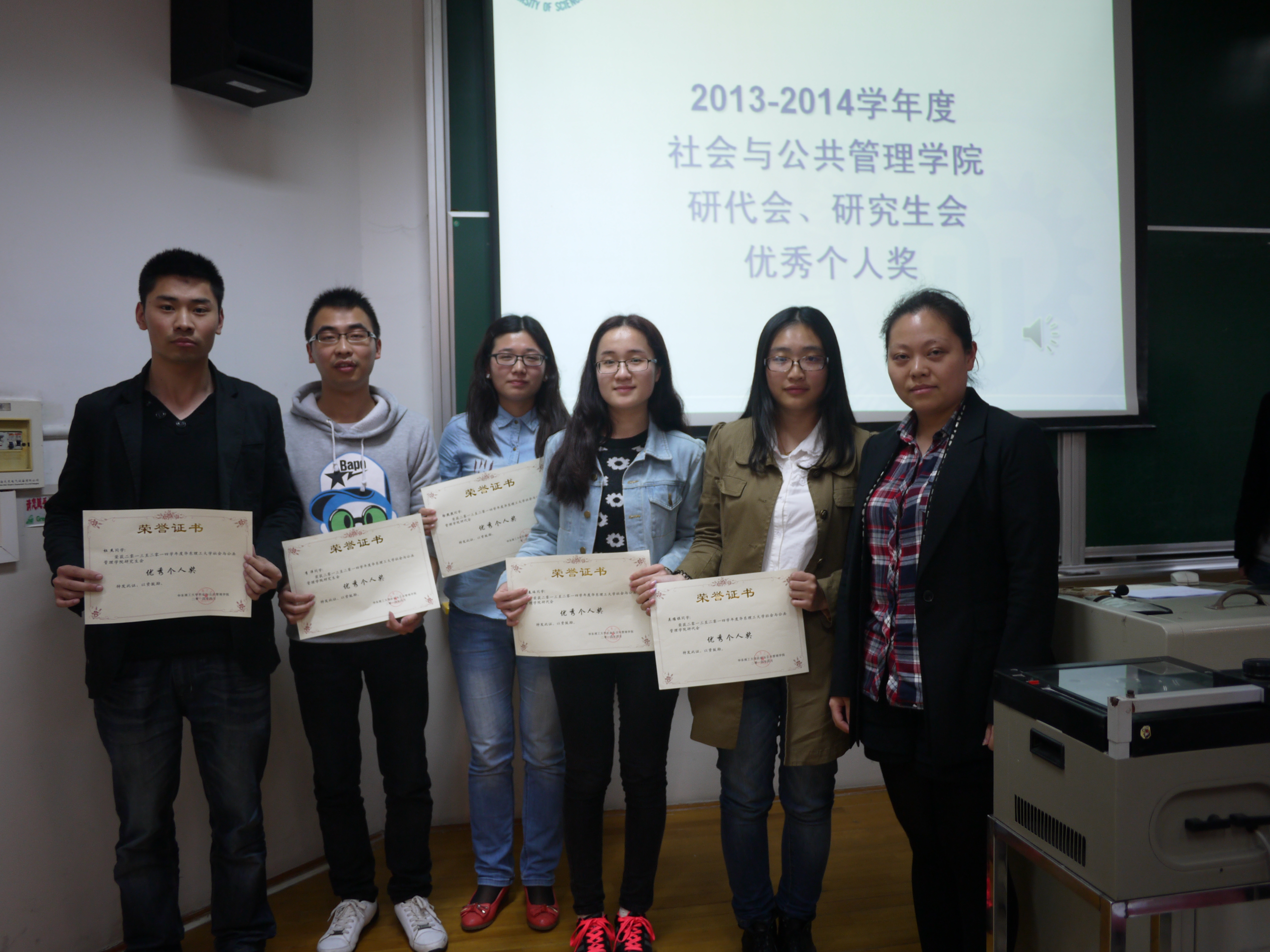 随后,学院副院长杨发祥教授做了总结讲话,对本次换届选举工作的圆满成功表示祝贺,并对新一届当选成员提出要求,希望新一届的同学能做好学院布置的各项任务,同时抓紧学术研究,学习工作两不误。杨老师代表学院对学生活动表示重视与支持,期待未来学院学生活动的良好开展。此后,杨发祥老师和孙秀慧老师为过去一年辛勤工作的研会、研代会优秀个人颁发了奖状以资鼓励。