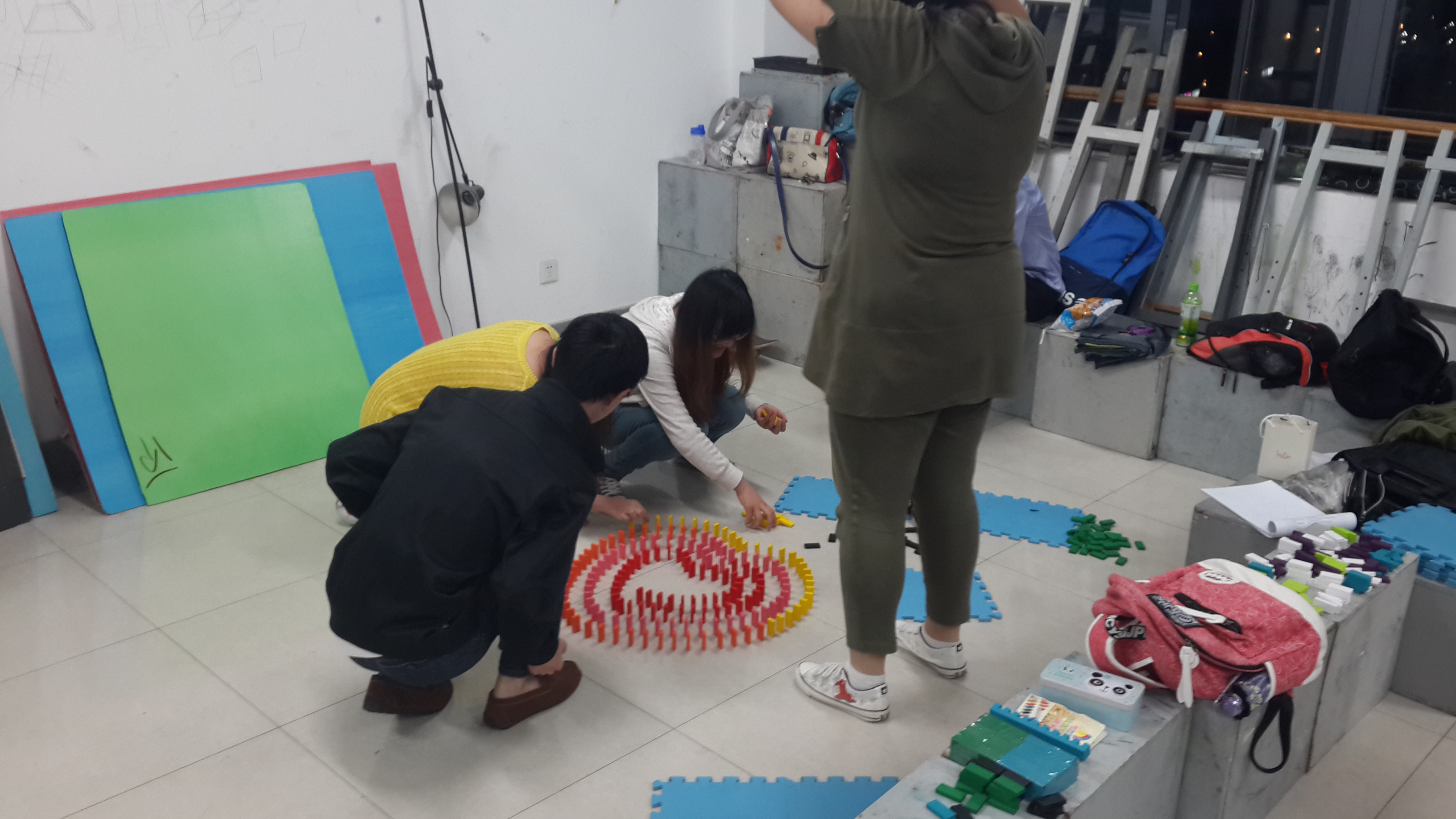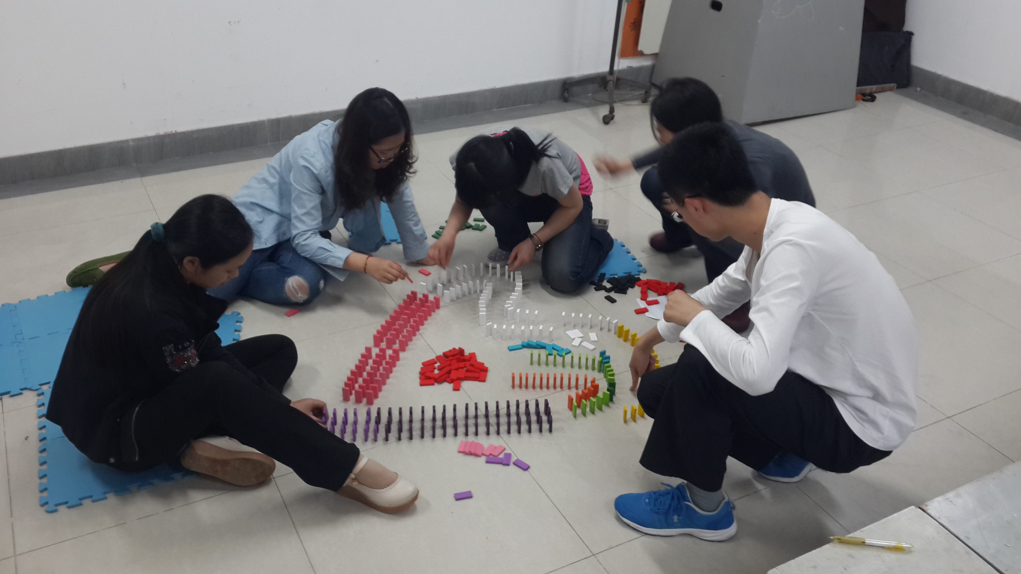 参赛过程中,同学们思维活跃创新,自创了多个于公益相关的图案,并坚持不懈的用多米诺骨牌拼出自己设计的图案。虽然在过程中,有些参赛队的多米诺倒塌多次,但同学们仍然坚持不懈、耐心仔细,最后都成功的完成了比赛。每一队的同学们最后都分享了自己组的团的内在意义和自己对于公益的感想。活动气氛欢快融洽,许多同学都期待着下一次类似的活动。