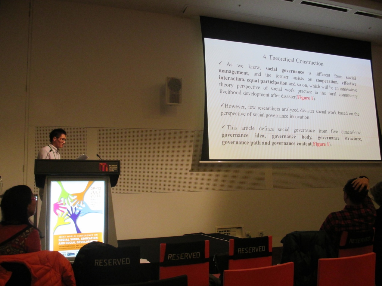 同时,徐选国博士获得我校研究生院资助的博士生参加国际高水平会议项目资助,其结合近几年在汶川灾后重建中的实务督导经验和研究素材,在“探索社会工作本土经验”分论坛上Social work in China:the theoretical paradigms and practical logics to response to the global agenda——A case study of social work intervention in post-disaster rural community livelihood development)的汇报与分享,与参会人员进行了积极互动,一定程度上从中国本土经验中提取了社会工作回应全球相关议程(灾害干预、灾后重建等)的理论范式和实践路径。作了题为《中国社会工作:回应全球议程的理论范式及其实践逻辑——以社会工作介入灾后农村社区生计发展为例》