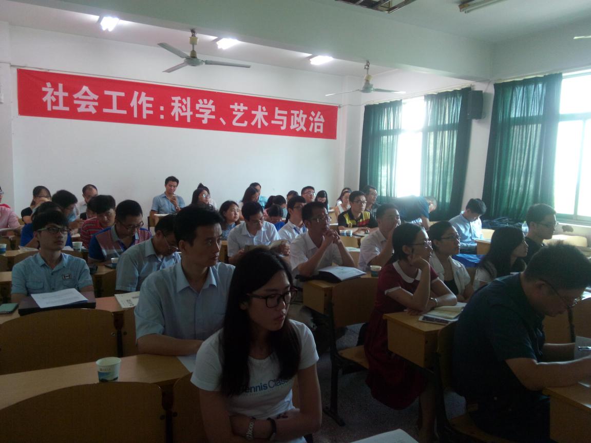 上海高校智库社会工作与社会政策研究院、华东理工大学社会与公共管理学院社会工作系、上海现代公益组织研究与评估中心于2015年7月12日上午在中南大学铁道校区世主504举行“社会工作:科学、艺术与政治”分论坛。本次论坛共收到学术论文30余篇,先后有来自全国各高校、研究所及社工机构的20多位与会代表进行发言,近百名学者参与现场讨论。该论坛首先由华东理工大学社会与公共管理学院院长徐永祥教授致辞,分享他对社会工作的科学性、艺术性及政治性的基本观点与深层认识,引发在场学者思考与讨论。