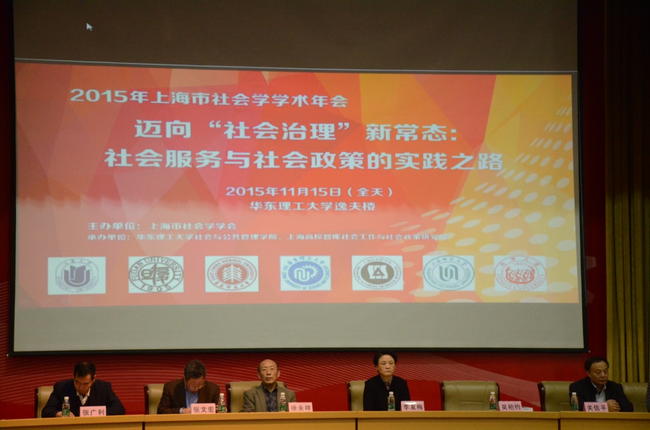 2015年11月15日, 2015年上海市社会学学术年会在华东理工大学举行。本次会议以迈向“社会治理”新常态:社会服务与社会政策的实践之路为主题。