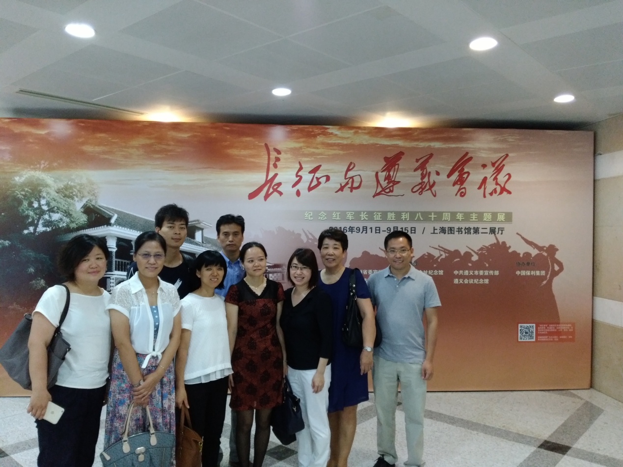 今年是红军长征胜利80周年。在这场人类历史上的伟大奇迹中,中央红军共进行了380余次战斗,攻占七百多座县城,共经过11个省,翻越18座大山,跨过24条大河,走过荒草地,翻过雪山,行程约二万五千里。为了更直观地了解长征的进程,更深入地体会长征的艰辛,更贴切地体会红军长征中所展现的精神,社会学党支部组织支部成员于2016年9月9日在上海市图书馆参观了《长征与遵义会议——纪念红军长征胜利80周年主题展》。