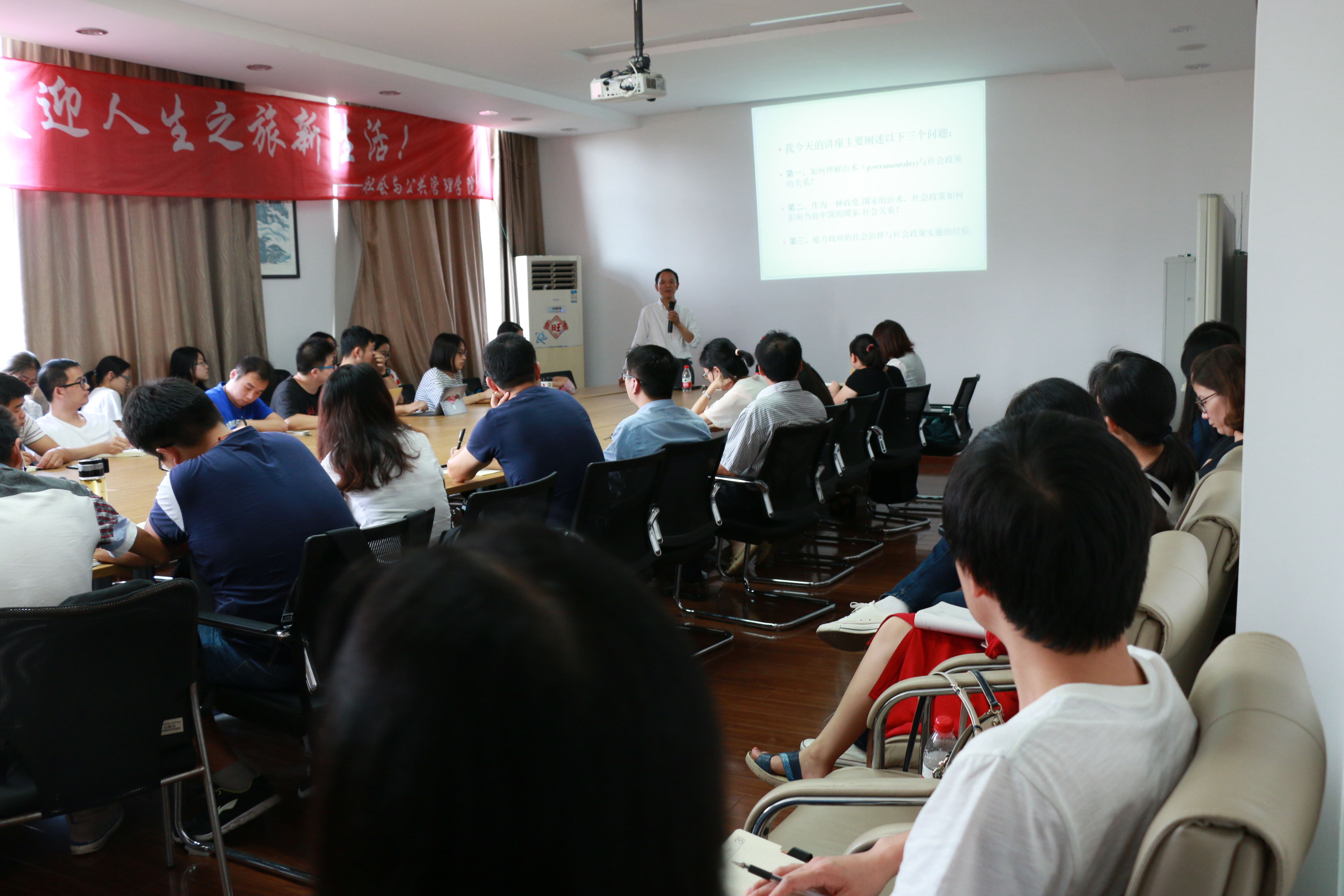 应社会学院院长何雪松教授邀请,著名社会学家、北京大学社会学系熊跃根教授,于9月24日下午3点在五教402室举办了题为“地方政府的社会治理与社会政策实施”的学术报告。报告由黄玉琴副教授主持,众多青年师生参加讲座。