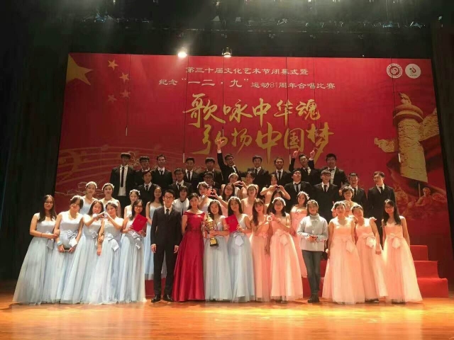 12月8日,“歌咏中华魂,弘扬中国梦”华东理工大学第三十届文化艺术节闭幕式暨纪念“一二·九”运动81周年合唱比赛在奉贤校区大学生活动中心800人剧场隆重举行。社会学院合唱团不负众望,通过对<<雪花的快乐>>、<<青春舞曲>>两首歌曲的精彩演绎和出色发挥,最终力压群芳、拔得头筹,获得本次合唱比赛技术得分、综合得分第一名及“小花梨”最佳人气奖,成为当之无愧的双料冠军,也实现了卫冕,延续了上届合唱比赛的辉煌战绩,为社会学院再添荣誉。