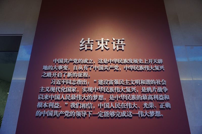 中共一大会址纪念馆成立于1952年,纪念馆原有馆舍系利用中共“一大”会址所在地的原有建筑,会议室的布置均恢复了原貌,家具物品是按原样仿制的。进入纪念馆首先展示的是当时参加中共一大的15名代表的肖像。同时还建立了中国共产党成立前后四十余年的历史文物陈列馆,见证了中国从屈辱到觉醒奋起,从一盘散沙到无坚不摧,总共分为三个部分。第一部分主要讲中国共产党的成立是近代中国历史发展的必然结果。历史证明,农民阶级、小资产阶级、资产阶级都不能领导中国的反帝反封建的民主革命取得胜利,这一历史重任必然要落到无产阶级及其政党肩上。第二部分主要讲中国共产党的成立是马克思列宁主义与中国工人运动相结合的产物。第三部分是中国共产党的成立是开天辟地的大事,是展览的重点部分,详尽展出了中国共产党第一次全国代表大会的召开。