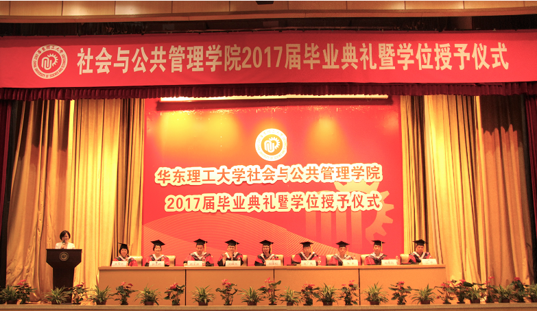 伴随着雄壮的国歌声,毕业典礼正式开始。张广利宣读了《华东理工大学社会与公共管理学院2017届优秀毕业生表彰决定》,决定授予侯利文等10 人“上海市优秀毕业生”荣誉称号,授予郑珊珊等12人“校优秀毕业生”荣誉称号。刘晓亮宣读了《华东理工大学社会与公共管理学院2017届优秀毕业论文表彰决定》,孙晓彤等10人获得“优秀毕业论文”。