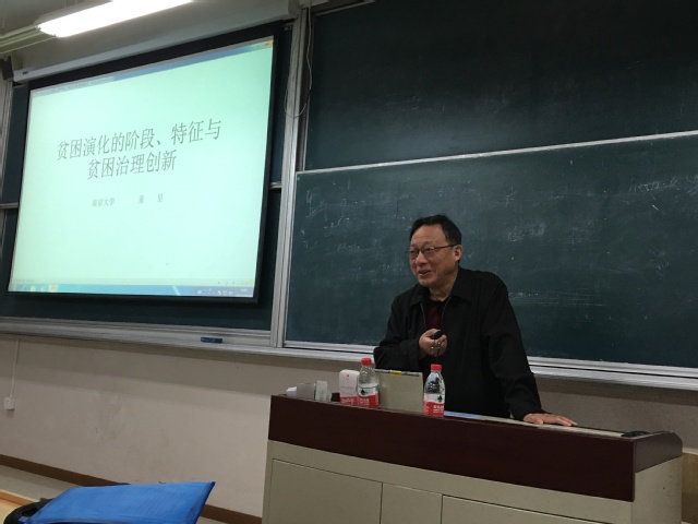社会与公共管理学院“65周年校庆系列讲座”,本期“精准脱贫与社区治理”专题,何雪松院长特邀中国著名社会学家、南京大学童星教授来我校讲学。10月30日上午,童星教授在5教112室进行了“贫困演化、特征与治理贫困创新”报告,社会学院100余名师生聆听了报告。