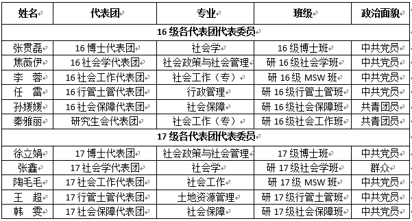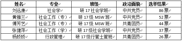 第十四届社会与公共管理学院研究生会主席团竞选结果