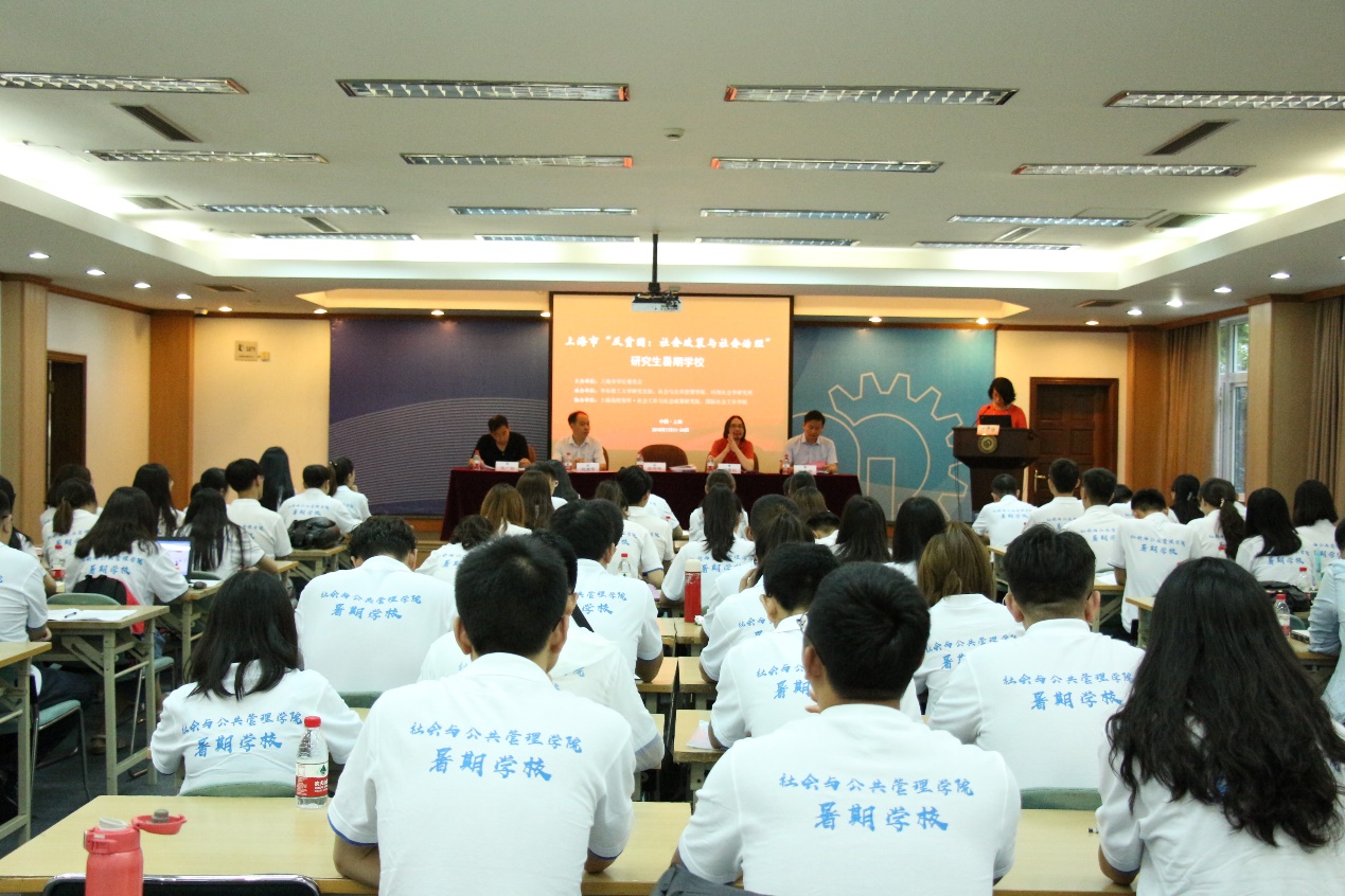 7月13日上午,由上海市学位委员会主办,华东理工大学研究生院、社会与公共管理学院、应用社会学研究所承办的2018年上海市“反贫困:社会政策与社会治理”研究生暑期学校顺利开班。开学典礼在逸夫楼演讲厅举行。华东理工大学研究生院副院长栾伟玲教授、人文社科处处长范体军教授、社会与公共管理学院院长何雪松教授、党委书记张广利教授出席了开学典礼。典礼由社会与公共管理学院副院长杨发祥教授主持。