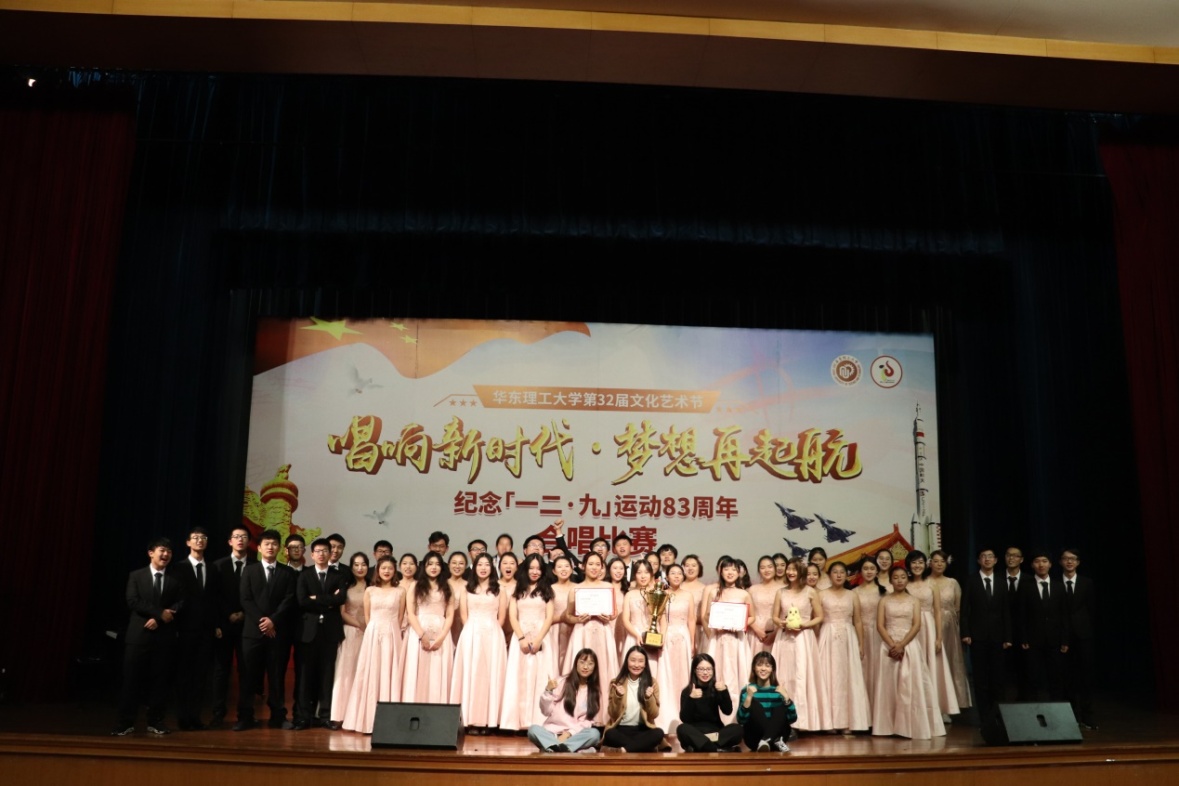 12月5日晚,华东理工大学在奉贤校区大活八百举办了“唱响新时代,梦想再起航”——纪念“一二·九”运动83周年合唱比赛。社会学院凭借出色的表现获当晚合唱比赛冠军及最佳人气奖双料冠军。