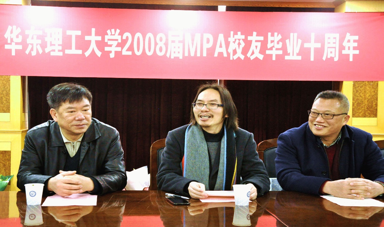 2018年12月16日上午,以“心系母校,感恩师德”为主题的华东理工大学首届MPA毕业十周年返校活动在逸夫楼第三会议室举行。十年来,同学们秉承“勤奋求实,励志明德”的校训精神,积极进取,努力工作,以良好的工作成效报答母校的培育之恩。