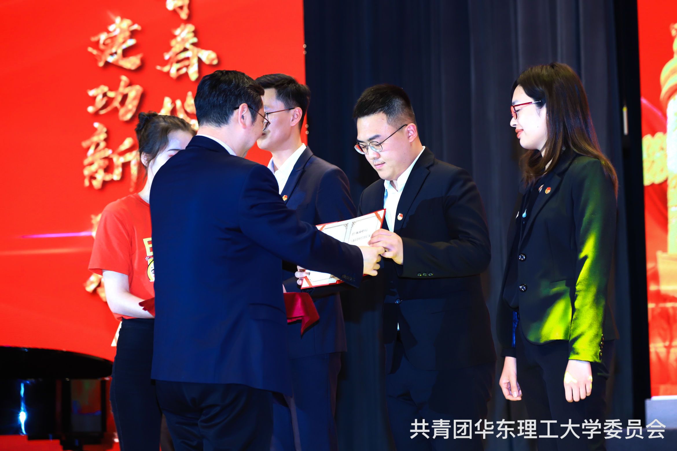 (“华东理工大学优秀专职团干部”严任舟老师领奖)