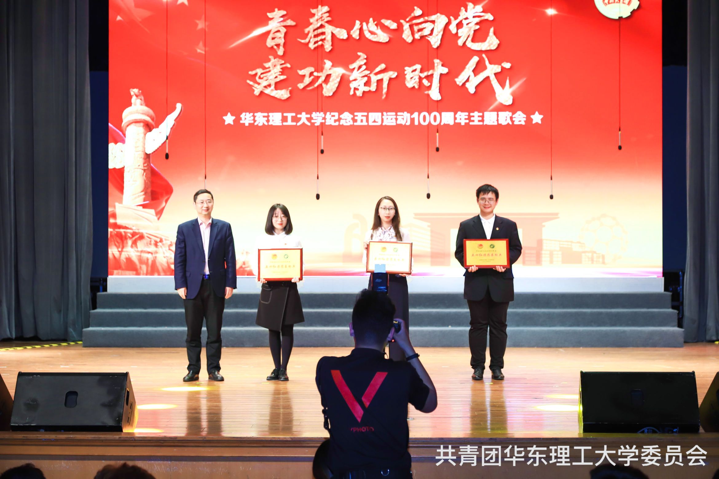 5月6日晚,华东理工大学“青春心向党,建功新时代”纪念五四运动一百周年主题歌会暨五四表彰大会在大学生活动中心剧场举行,我院团委荣获2018年度“上海市五四红旗团委”、 “华东理工大学五四红旗团委(标兵)”等多项光荣称号,我院团委书记严任舟老师获“华东理工大学优秀专职团干部”,我院研究生张洺硕同学荣获2018年度“上海市优秀共青团员”,社保162班荣获2018年度校“十佳团支部”称号。这些丰硕成果是对我院团委一年来踏实工作的肯定。
