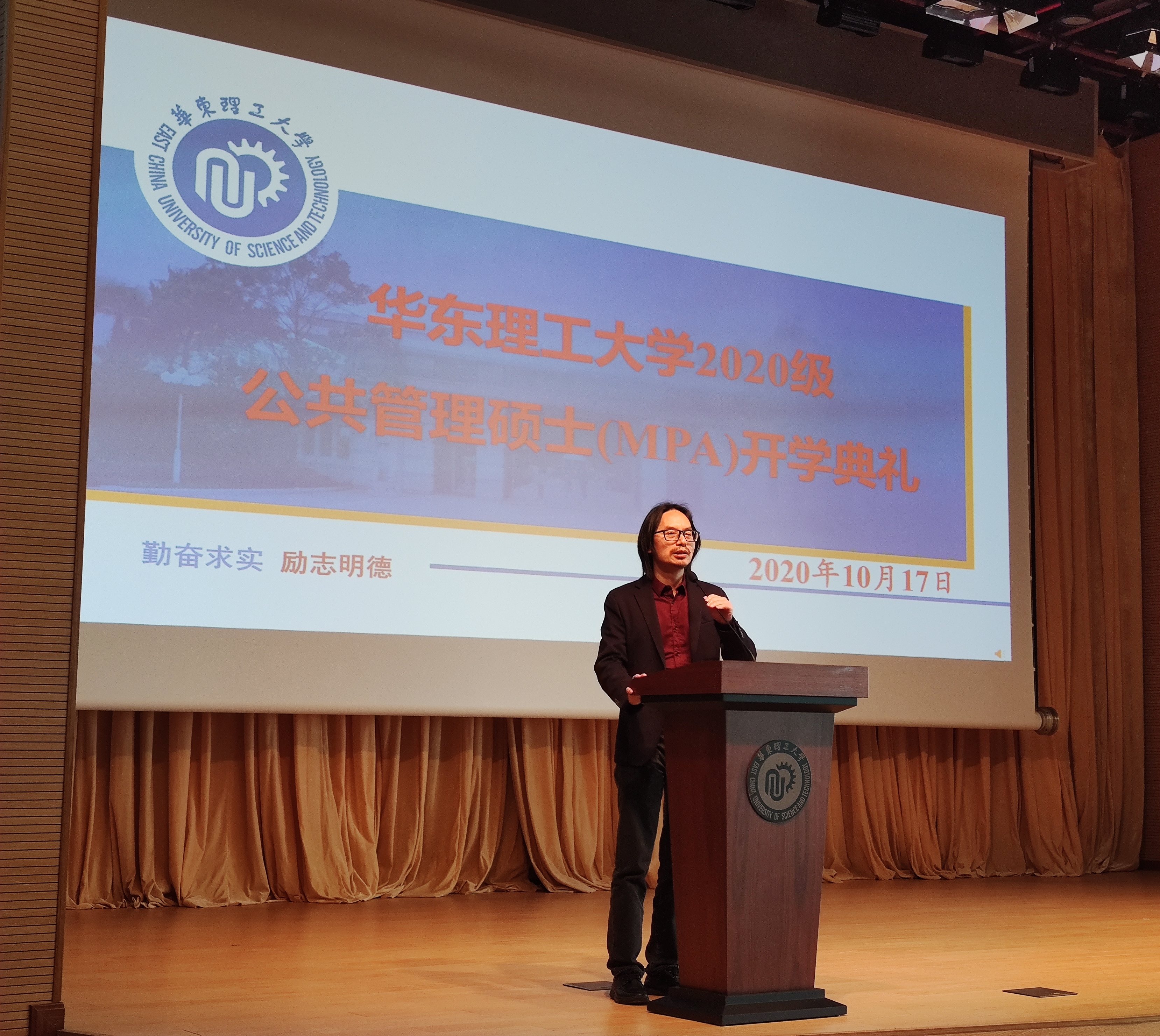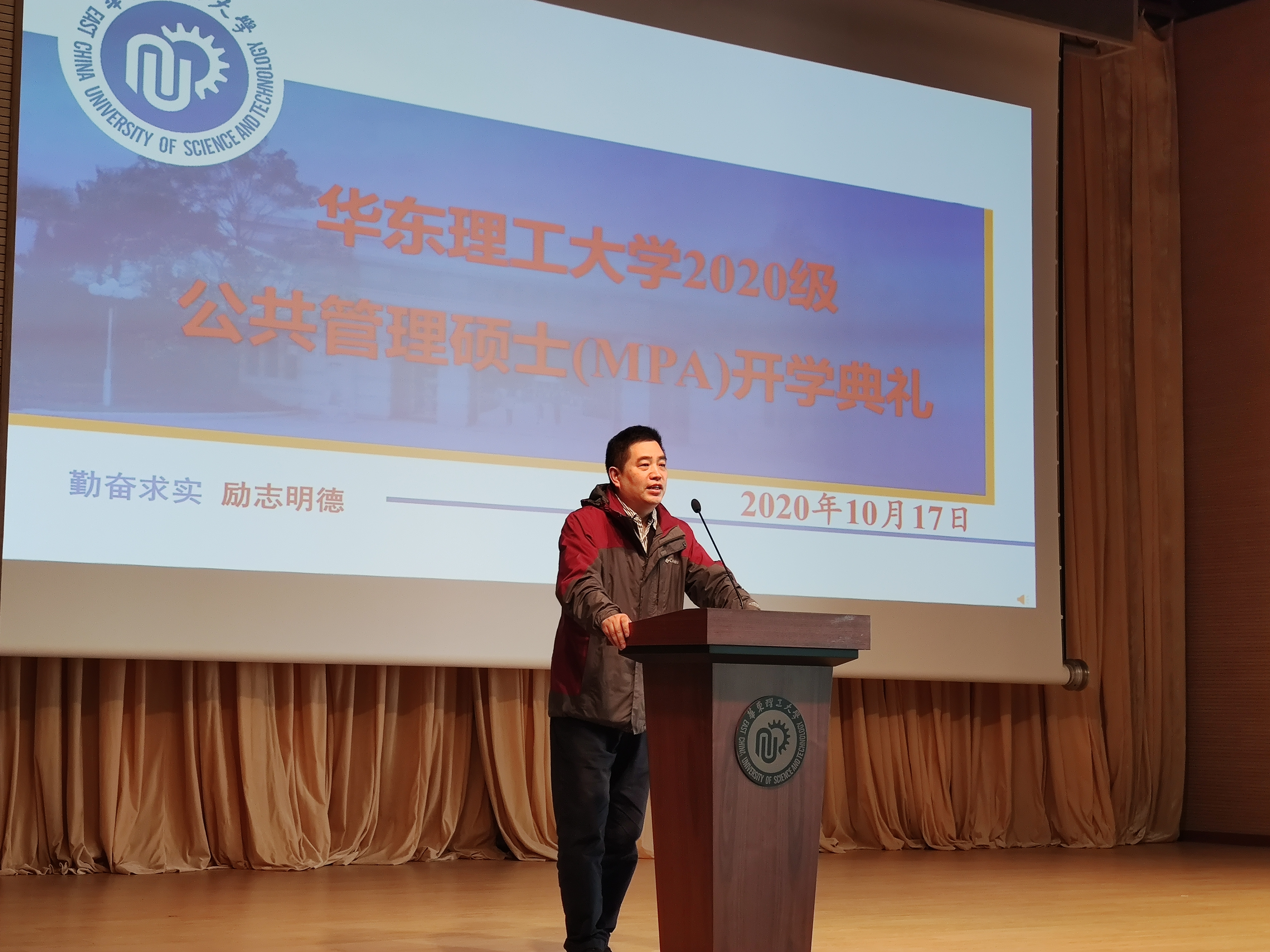 2020年10月17日,2020级公共管理硕士(MPA)开学典礼在商学院大楼406室隆重举行。开学典礼由MPA教育中心副主任龚秀全教授主持,社会与公共管理学院院长何雪松教授、专业学位教育中心副主任黄忠怀副教授、教师代表黄时进教授等出席。