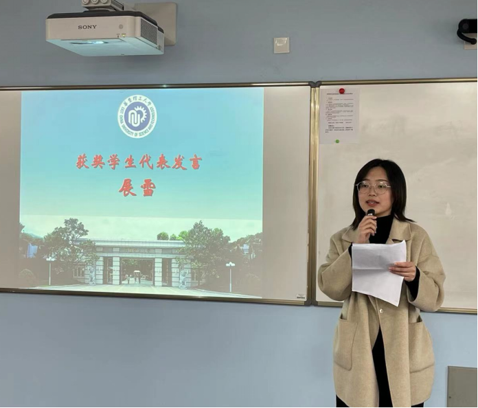 图7 研究生获奖学生代表展雪发表获奖感言