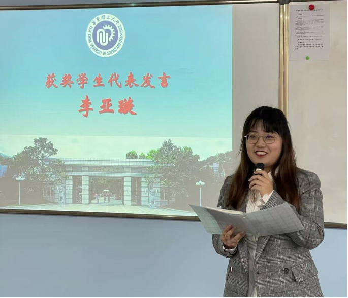 图6 本科获奖学生代表李亚璇发表获奖感言