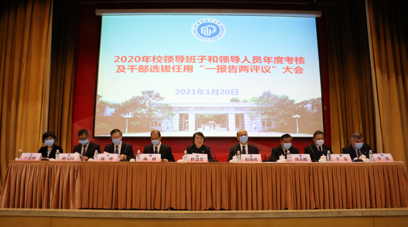 2021年1月20日,华东理工大学2020年校领导班子和领导人员年度考核及干部选拔任用“一报告两评议”工作会议在逸夫楼报告厅召开。我院候利文、刘伟和汪华三位教代会代表出席并参与评议。“一报告两评议”工作会议由校党委书记杜慧芳主持,校长轩福贞作大会报告。教代会代表认真听取了相关校领导的工作报告和杜慧芳代表校领导班所作的报告,并以现场评分的方式进行了民主评议。