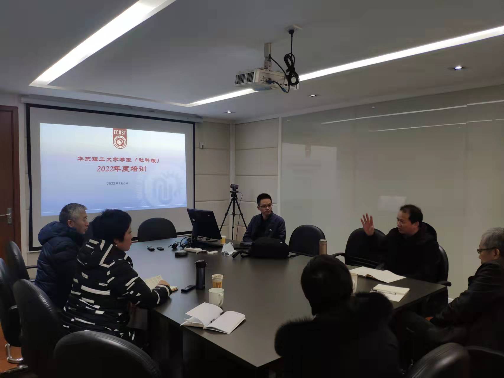 2022年1月6日上午,《华东理工大学学报》(社会科学版)编辑部在团结一二楼318会议室召开培训会,邀请上海市社会科学院党委宣传部副部长、《史林》杂志副主编王健研究员做专题培训。编辑部全体人员参加了培训会,会议由常务副主编汪华主持。
