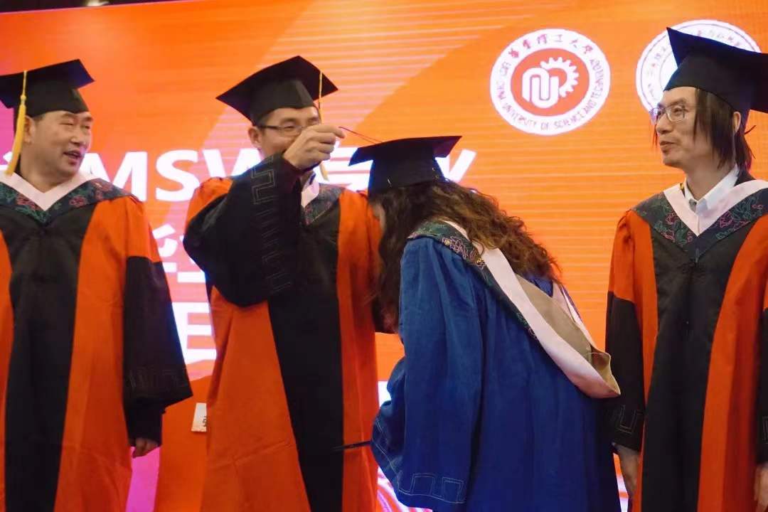 杜文莉宣读博士和MSW专业硕士毕业生名单,郁惠蕾宣读社会学科与公共管理学科硕士毕业生名单,授予辛甜等5人博士学位、葛倩等90人硕士学位。在激昂的乐声中,陪伴毕业生成长、给予毕业生谆谆教诲的导师们为他们拨穗正冠,所有毕业生依次上台,接受这一庄重而激动人心的仪式。