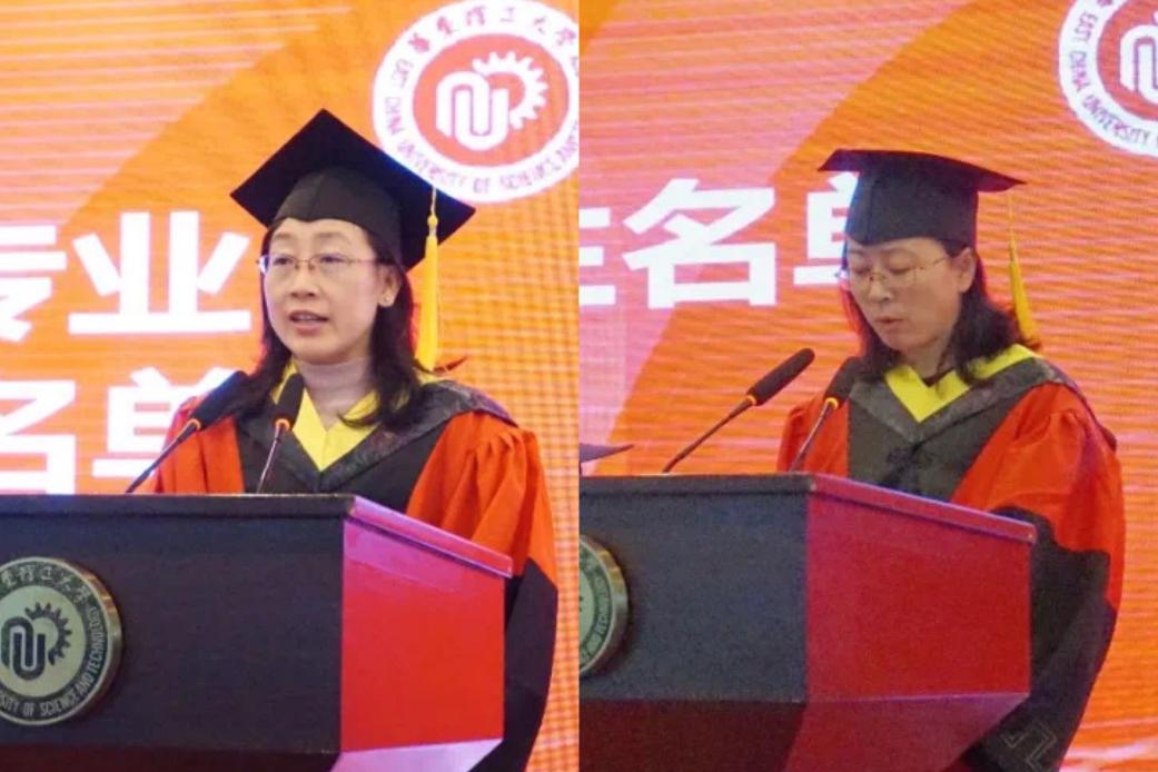 校研究生院院长杜文莉、副院长郁惠蕾宣读毕业生名单