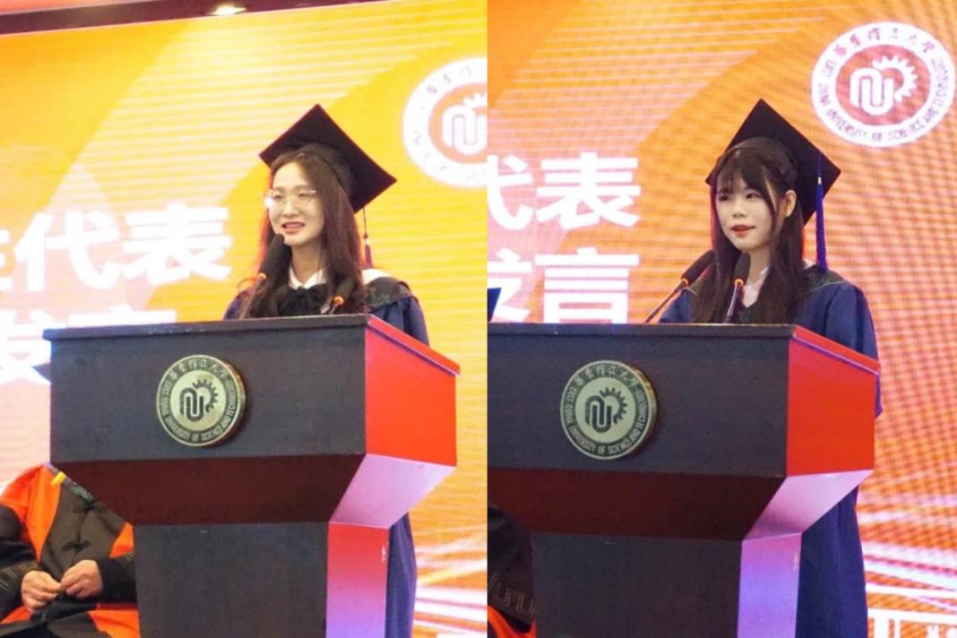 毕业生代表葛倩、闫紫菱发言