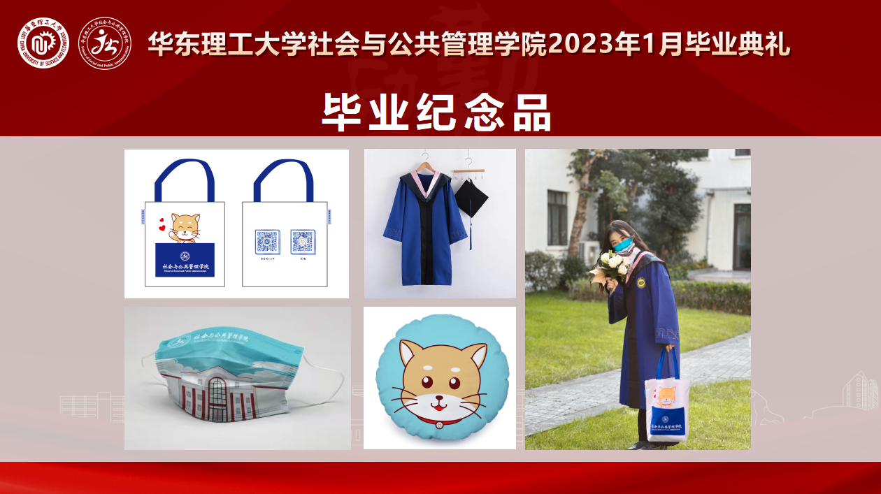 在学院向毕业典礼上也向同学们广大毕业生展示和赠送了学院新设计的毕业纪念品,向全体毕业生发出线下毕业季邀请函,邀请同学们再次回到母校,重温校园时光,在悠扬的校歌和在读同学们歌曲视频《陪你度过漫长岁月》中,华东理工大学社会与公共管理学院2023届毕业典礼圆满结束。为同学们留下深刻的记忆与美好的祝愿。
