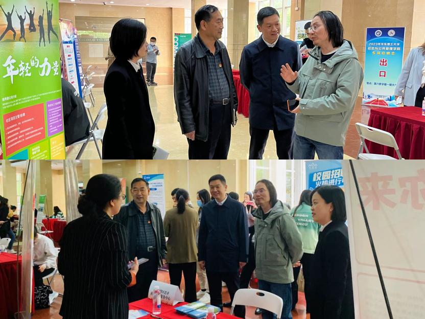 为搭建毕业生与用人单位面对面交流平台,拓展应届毕业生就业渠道,在华东理工大学就业中心指导下,4月25日下午,社会与公共管理学院2023年专场招聘会在徐汇校区第八教学楼一楼大厅举行。社会与公共管理学院党委书记张广利、院长何雪松、党委学生工作部(处)副部(处)长郑东、社会与公共管理学院党委副书记万胤婕等领导来到招聘会现场,与用人单位和毕业生亲切交流,了解招聘会组织开展情况,询问用人单位和毕业生关心诉求。