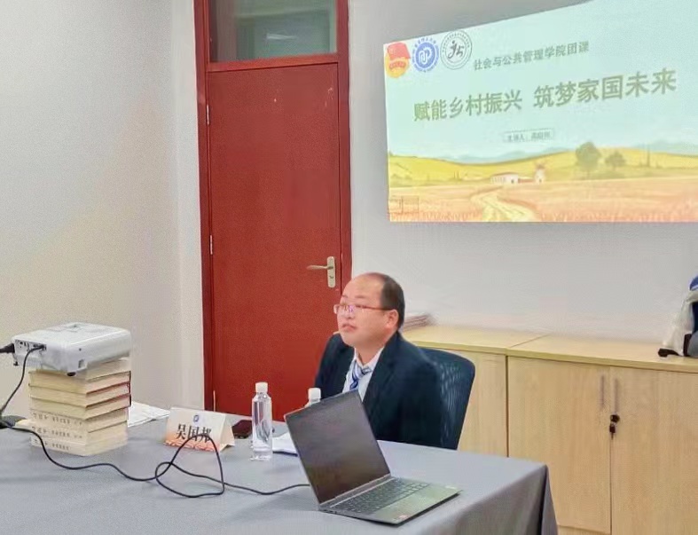为深入学习宣传贯彻党的二十大精神,扎实推动学习贯彻习近平新时代中国特色社会主义思想主题教育,引领广大青年学子扎根基层,5月19日,社会与公共管理学院邀请曾获人民日报点赞的“牛司令”、社会工作专业2015届校友吴国邦为奉贤校区的团员青年上专题团课,通过讲述自己返乡创业的经历,激励广大团员青年投身乡村振兴事业。