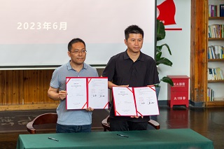 华东理工大学社会与公共管理学院社会学系主任黄玉琴教授与七都镇开弦弓村党委书记夏志骁先生共同为产学研实践基地揭牌。随后,社会学系副系主任赵方杜副教授与七都镇开弦弓村党委书记夏志骁先生共同签约。