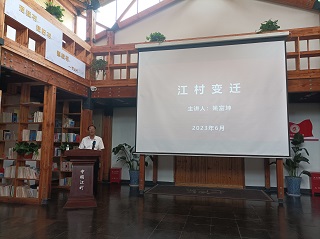 最后,江村文化园顾问兼农民社会学家姚富坤老师围绕江村近年来的发展,从穿衣、饮食、住房、出行、医疗、教育、人口、家庭、婚姻和宗教等十个方面为调研团队做了题为《江村变迁》的报告,让大家对江村的历史变迁有了更深刻的认识。