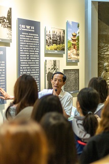 当天上午到达目的地后,农民社会学家姚富坤老师带领师生参观了江村文化园。江村文化园分设了费孝通纪念馆和江村文化馆两大主题馆。走过粉墙黛瓦的曲径亭廊,调研团队重温了江村乡村文化的发展历程,详细了解蚕丝专家费达生(费孝通之姐)带领江村百姓创建全国首家生丝精制运销合作社的艰辛历程及其终生从事蚕丝教育科研事业的伟大贡献;并以费老社会调查的大量珍贵图片和学术成果为主线,体悟费老用毕生精力为中国本土社会学的发展所做出的巨大贡献。